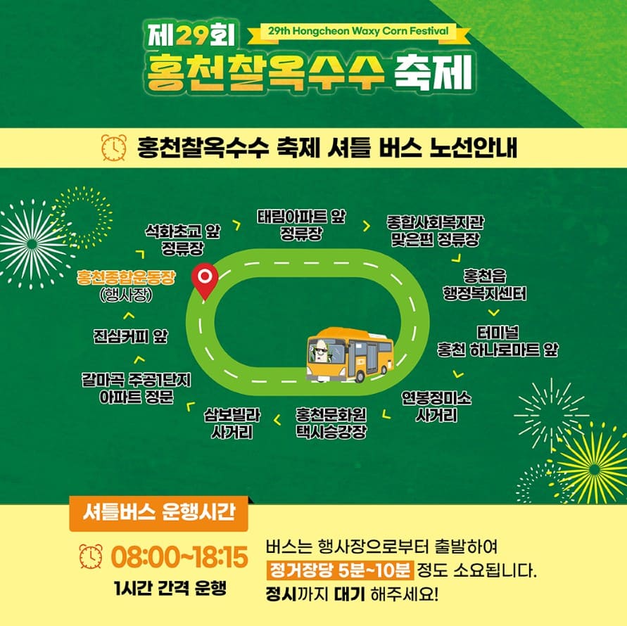 • 장소: 홍천 종합운동장 주차장 (찰옥수수 테마공원 일대)